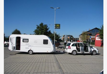 Летом путешествовали по Европе, в т.ч. с жилым прицепом (караваном). Удалось по немецким автобанам пожарить немного на 180 км/ч (без прицепа конечно). Но часто приходилось подвигаться вправо, пропускать низколетящих со свистом самолётов. Расход кстати на 180 км/ч с полной загрузкой под 17 литров на сотню. Быстро, но от заправки до заправки получается. В Берлине прицепили караван и прокатились в Швейцарию, Италию и Австрию (всего 3,5 тыс. с караваном). Прицеп Кнаус Спорт 500 ФДК, 7.2 м. длиной, 2.3 м. шириной, 2.5 м. высотой, 1.4 тонны весом. До поездки думал не потяну, но всё ок. Тянул и даже хорошо. Расход бензина по трассе с караваном на 80 км/ч – 10 л., на 100 км/ч – 11 л., на 110 км/ч – 13 л., т.е. в целом расход увеличивается не критично. Коробка передач сама подстраивается под нагрузку. Переключается на повышенную при больших оборотах и спускается на пониженную при любом дополнительном нажатии на педаль газа. По прямой на 90 – 100 км/ч включается 5 передача на 3 тыс. оборотах, на 100 – 110 км/ч – только четвёртая на 4 тыс. оборотах. 3-я передача с оборотами под 5 тыс. включается на подъёмах, позволяя удерживать скорость 90 км/ч.