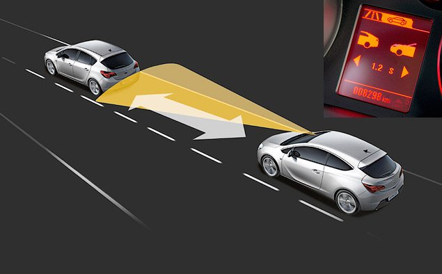 Камера Opel Eye стала более компактной и точной. Теперь она заведует сразу двумя системами: распознавания знаков Traffic Sign Assistant (в доработанном, улучшенном варианте) и системой слежения за разметкой Lane Departure Warning. TSA научили «читать» еще большее количество знаков, а также динамические (например, светодиодные) знаки. А система LDW при пересечении разметки с выключенным поворотником сигнализирует водителю звуковым сигналом.>