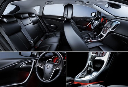 В зависимости от комплектации салон "Астры" может быть оформлен по-разному. В базовой версии Essentia - "тряпичные" кресла с контрастным рисунком подушек и вставок на спинках, а также выполненная в темной гамме центральная консоль. В модификации Enjoy (на фото) вставки на дверях и консоли могут выполнены в черном, красном или синем цвете. В Sport покрытие центральной консоли, дверных ручек и накладок вокруг вентиляционных отверстий имеет уже знакомую "астроводам" отделку "черный рояль". В версии Cosmo появятся другие сиденья и двухцветная отделка консоли. Наконец, для "Астры" теперь можно будет заказать рулевое колесо с подогревом.