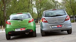 Вопреки традиции сначала – о тормозах. Потому как и на “Корсе”, и на “Мазде” управлять замедлением легко и просто. Причем особенно радует “запас прочности” под педалью – несмотря на то, что сзади у обоих супермини установлены барабанные механизмы, они без труда усмирят и более мощные моторы.