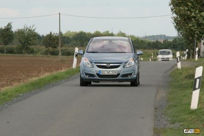 Выехав на скоростной участок шоссе, мы перестроились в крайний левый ряд, чтобы проверить, на что способна наша малютка. До 100 км/ч 1,4-литровый двигатель позволяет манипулировать автомобилем так, как ты этого желаешь, резво набирает скорость, динамично движется. Но после сотни динамика пропадает, а максимальная скорость, которую смог показать 90-сильный Opel Corsa 1,4 составила чуть более 150 км/ч. Рабочий диапазон оборотов, на которых автомобиль остается «живым» начинается где-то от 3 тысяч в минуту, а максимальный крутящий момент в 125 Нм достигается и того позже, при 4 000 об/мин. Но нужна ли безумная прыть городскому автомобилю? Наверное, нет, дальше 4-й передачи в центре почти любого города не переключиться, а в Москве и подавно в пределах МКАД об этом можно мечтать только ночью, да и то не всегда. Видимо понимая это, немецкие водители относились к нам крайне любезно. Вот сзади пристроился Mercedes E-Class, мы едем по левой полосе со скоростью около 100 км/ч, но он даже не моргает нам фарами, не говоря о том, чтобы прижимать или доказывать, что его автомобиль может ехать быстрее, каким-либо другим способом. Эх, вот бы нам такую культуру вождения… По дороге пришлось некоторое время привыкать к подрулевым переключателям, они показались коротковатыми и удаленными от руля, но это, опять же, кто как привык «гнуть» пальцы.