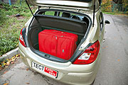 Если верить паспортным данным, у “Корсы” весьма приличный для своего класса багажник в 285 л. Однако его реальная вместительность в этом не убеждает. Например, у “Клио” заявленный объем больше всего на 5 литров, хотя на самом деле трюм у “француза” куда более емкий. Видимо, для “Опеля” парадные цифры были получены с учетом ниши “запаски” (в базовой европейской комплектации ее нет) и спинок дивана, установленных в максимально вертикальное положение. Но тогда сидеть сзади становится неудобно.