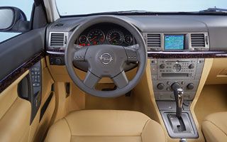 Щиток приборов по-опелевски лаконичен, лишь хромированные ободки циферблатов привносят ощущение дороговизны. Панель в целом идентична той, что устанавливается на Vectra, с небольшой поправкой на размер. В центре расположен монитор, изображение на котором прекрасно видно при любом освещении. Центральная консоль чем-то напоминают консоль Omega, но выглядит намного современнее, а главное — пользоваться всеми кнопками, в том числе управления системой раздельного климат-контроля, удобно. Не буду подробно останавливаться на четырех различных вариантах оборудования — это задача дилеров — лучше вкратце расскажу о ходовых качествах автомобиля.