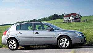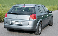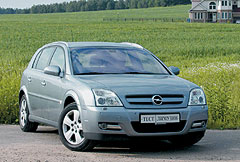 Автомобиль подставляет рельефные боковины знойному июльскому солнцу, а я даже после четырех дней общения с ним никак не привыкну к его необычному виду. “Сигнум” – по определению создателей, хэтчбек бизнес-класса – кажется очень большим, но на самом деле он всего на 4 см длиннее “Вектры” (4636 мм). В нем есть и уже хорошо знакомые детали – мощные спойлеры и V-образные подштамповки, схожие с теми, что у “спортсмена” GTS. И в то же время “Сигнум” умело выставляет на показ изыски появившегося еще два года назад концепта: широченные задние стойки и огромное куполовидное стекло пятой двери.