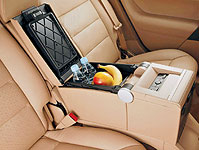 А разве не фантастика – комплект “трэвел-ассист”. По сути, это большой, обитый кожей ящик, который по заказу можно установить между сиденьями. В нем два складных столика, охлаждаемая емкость для напитков, вместительный контейнер, два подстаканника, 12-вольтовая розетка и подставка для DVD-проигрывателя. Кроме того, при наличии в автомобиле музыкальной системы “твин-аудио”, задние пассажиры могут слушать компакт-диски, когда спереди играет радио. Замечательная штука.
