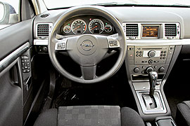 Отрадно, что «Вектра» производит еще и приятное эстетическое впечатление. 2,2-литровый «Опель» поставляется в Россию только в топ-комплектациях «Элеганс» и «Космо». Первая отличается светло-песочной отделкой и деревянными вставками, вторая радует спортивными кожано-тканевыми сиденьями. И та и другая нарядны, милы и в меру изысканны.