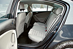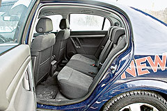 И по ширине, и по длине на заднем диване «Фольксваген» превосходит «Опель» – соответственно +3 и +2,5 см. Но что толку в таком преимуществе, если отформованный под две персоны диван очевидно не рад третьему пассажиру. А четверо взрослых под метр девяносто без проблем усядутся в обоих седанах.