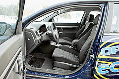 Зато по части управляемости «Вектра» понравилась меньше. Что неудивительно: роль «зажигалки» в гамме моделей «Вектры» отдана хэтчбеку GTS с пониженной спортивной подвеской. Седан же более комфортабелен и, увы, более расхлябан в предельных режимах. Скажем, за отметкой в 140 км/ч подвеска уже не справляется с неровностями дороги и кузов плывет, как по волнам. Но больше всего раздражает невнятный руль. Недавно инженеры из Руссельсхайма уменьшили передаточное отношение рулевой рейки, сделав «баранку» более «острой» – всего 2,6 оборота от упора до упора. Но к чему все это, если электроусилитель начисто лишает водителя радости обратной связи? О том, куда смотрят колеса в быстром повороте, остается только догадываться.