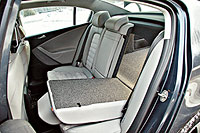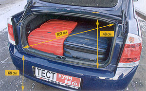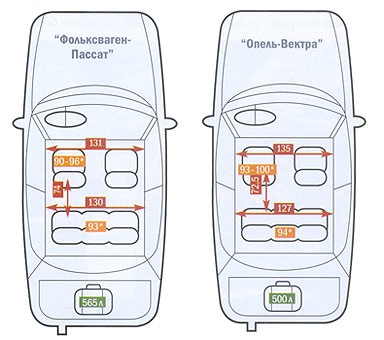 Багажник «Пассата» объемом 565 литров – не просто лучший результат в среднем классе, это больше, чем у большинства автомобилей категории люкс. Но вот беда, традиционная конституция классического седана подпортила впечатление от рекорда. Несмотря на чемпионские литры, в чрево «Фольксвагена» помещаются два больших чемодана и один средний. Результат, конечно, хороший, но не выдающийся. Ведь такая же норма по плечу многим моделям «гольф»-класса, да и та же «Вектра» хуже ровно на один средний чемодан. Главная проблема обоих в ограниченных возможностях перевозки габаритных предметов. Узкий тоннель между салоном и багажником, а также складывающаяся ступенькой спинка дивана – очевидные минусы седанов.