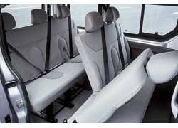 | В микроавтобусах спинки сидений второго ряда складываются и по отдельности. В дорогих исполнениях эти кресла поворачиваются на 180 град. | Всю приборную панель накрывает широкий козырек. Благодаря вынесенному на торпедо рычагу КП кабина фургона вмещает до трех человек. |