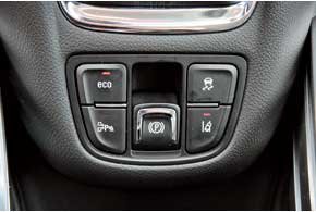 | Выбор режима Sport в системе FlexRide изменяет подсветку приборов с белой на красную. | За включение системы Start/Stop отвечает кнопка Eco, а три другие отвечают за парктроник, систему слежения за дорожной разметкой и ESP. |