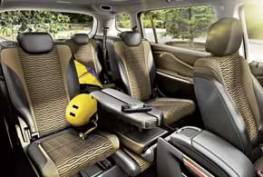 | Подушка центрального кресла второго ряда смещается вперед и вниз, позволяя сдвинуть наружные сиденья, а его спинка «сворачивается» в удобный подлокотник. Кресла второго и третьего ряда складываются, образуя ровный пол. | |
