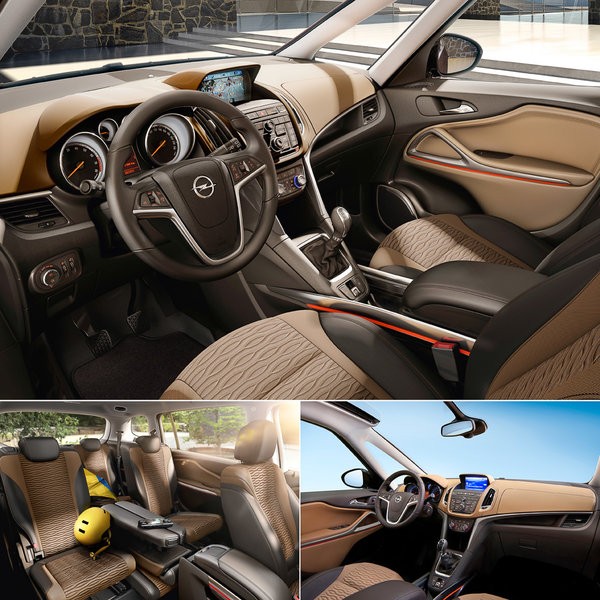 В комплектации Cosmo Zafira Tourer может похвастать таким вот элегантным двуцветным салоном с кожаной отделкой. В версиях попроще салон серый.