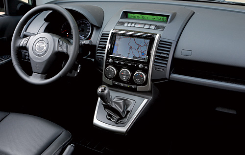 Mazda5 стала заметно моднее: пассажиру есть куда воткнуть свой iPod, на чем послушать 3 000 записей (кроме CD, есть возможность играть и MP3-музыку), где посмотреть DVD и где проследить за стыковкой мобильного телефона с Bluetooth.