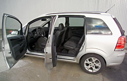 Кому, скажите, не хочется, чтобы его движимое имущество выглядело привлекательно? “Зафира”, конечно, не поражает воображение изысканностью форм, но в целом смотрится вполне симпатично. Снаружи она кажется старшей сестрой “Астры” – те же большие прозрачные кристаллы передних фар, четко прорисованные колесные арки, улыбка радиаторной решетки и внушительных размеров воздухозаборник. Но есть у нее одна особенность, которая делает машину совершенно неотразимой – опять же в первую очередь для владельца.